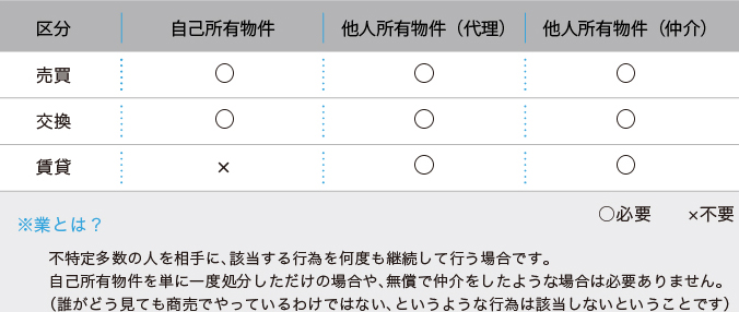 自己所有物件であっても、売買や交換を業として行う場合には必要になります。